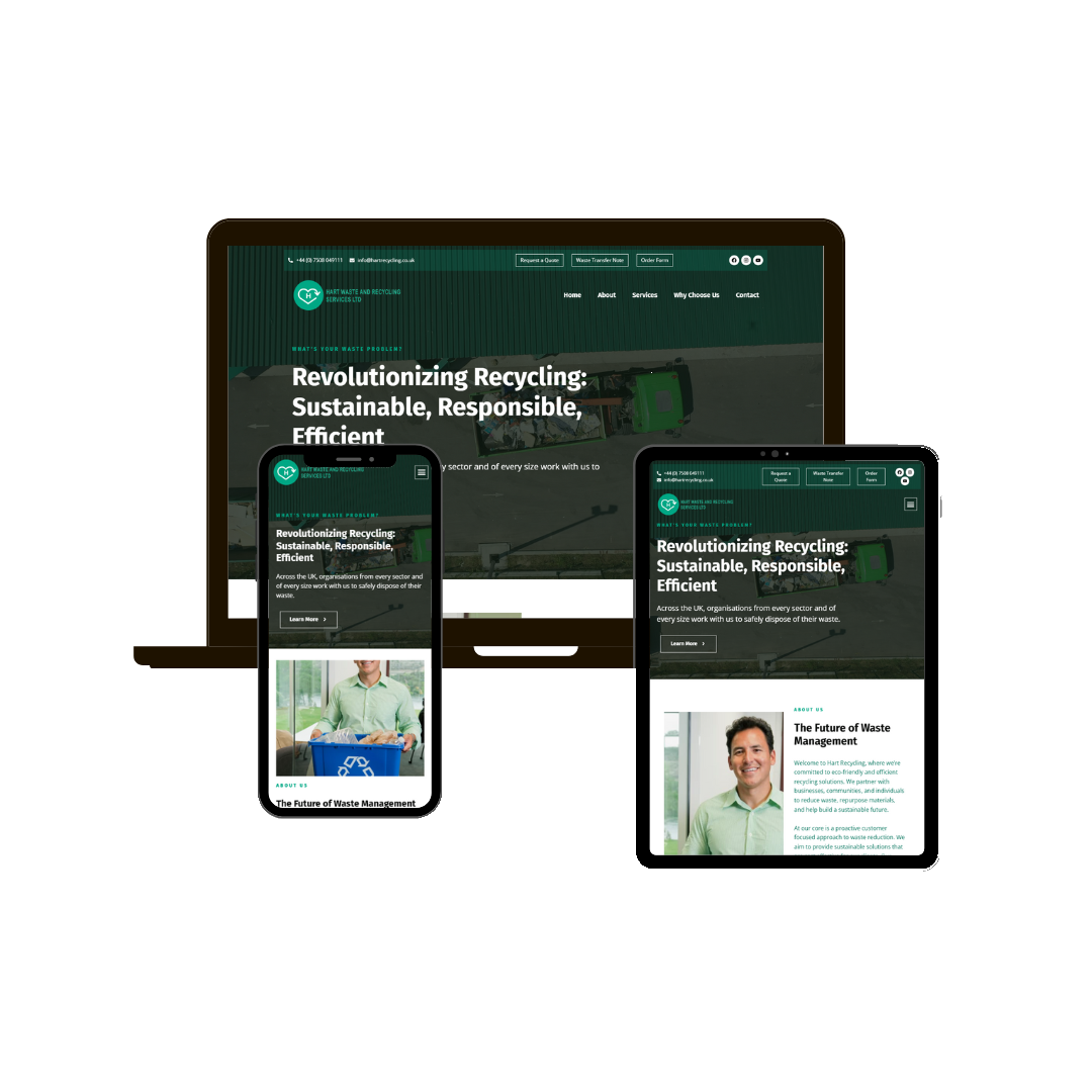 We developed an eco-conscious website for a recycling and waste management business, highlighting their commitment to sustainability and environmental impact. The design features a clean, modern layout that resonates with their green mission.